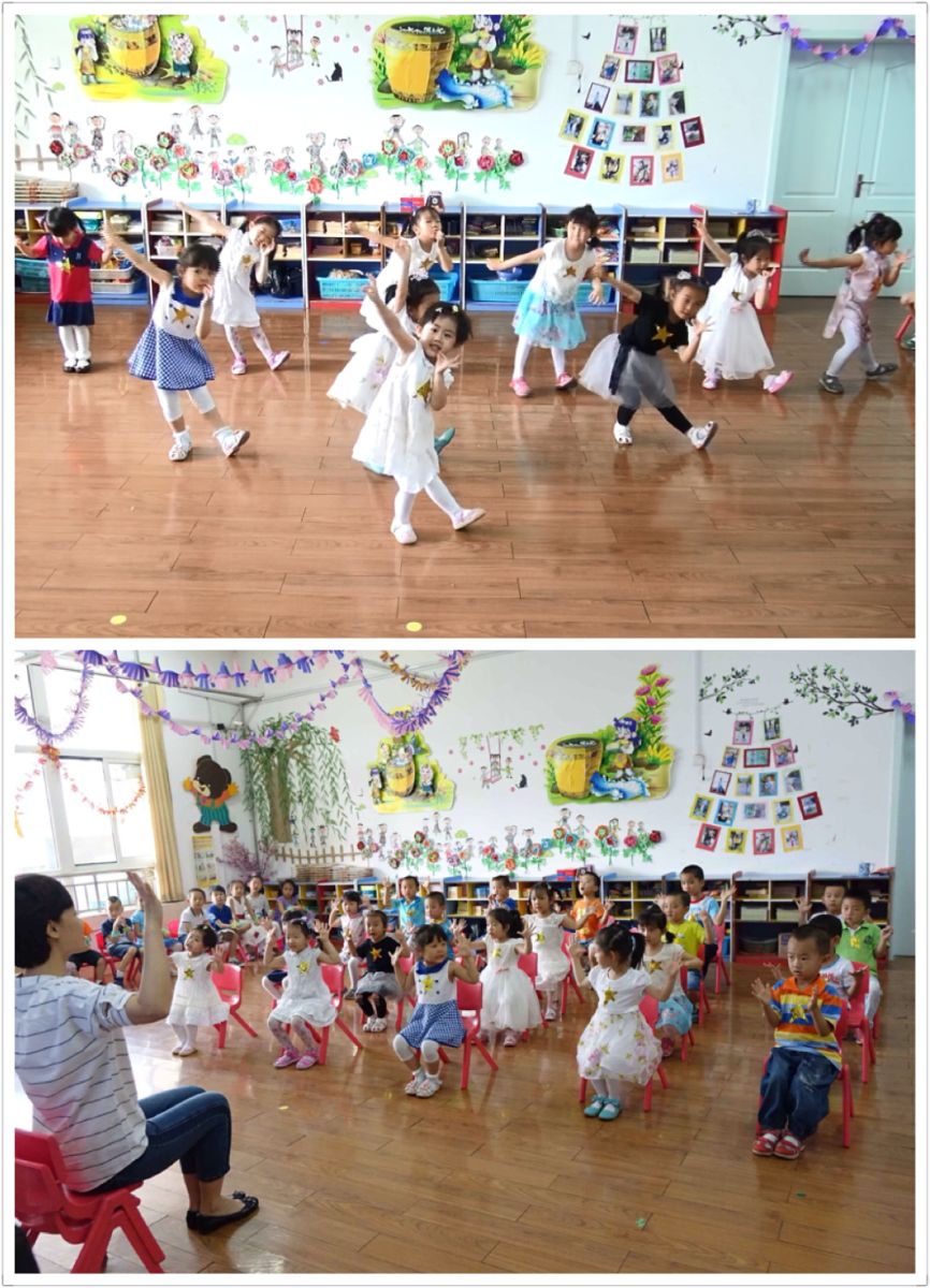 孩子们表演了丰富多彩的节目。首先,全体大班小朋友演唱了歌曲《小浪花》、《牧羊女》,旋律优美,感情真诚,稚嫩的歌声赢得了大家的阵阵掌声;李宏彦老师担任指挥,充满激情,动作到位,优雅、专业的指挥水平令大家赞赏不已;大一班的舞蹈《小白船》、大二班的舞蹈《彩虹的约定》,既展示了幼儿的优美舞姿,又表达了美好的节日祝愿;大一班的歌表演《我是一条小青龙》,一条条活泼可爱的小青龙,把大家带入美好的回忆;大二班表演的律动《手指运动》,节奏欢快,深受大家喜欢;可爱的小班小朋友为大家表演了律动《握紧拳头》,舞蹈《快乐的小鸟》,大班幼儿纷纷为弟弟妹妹的表现竖大拇指。