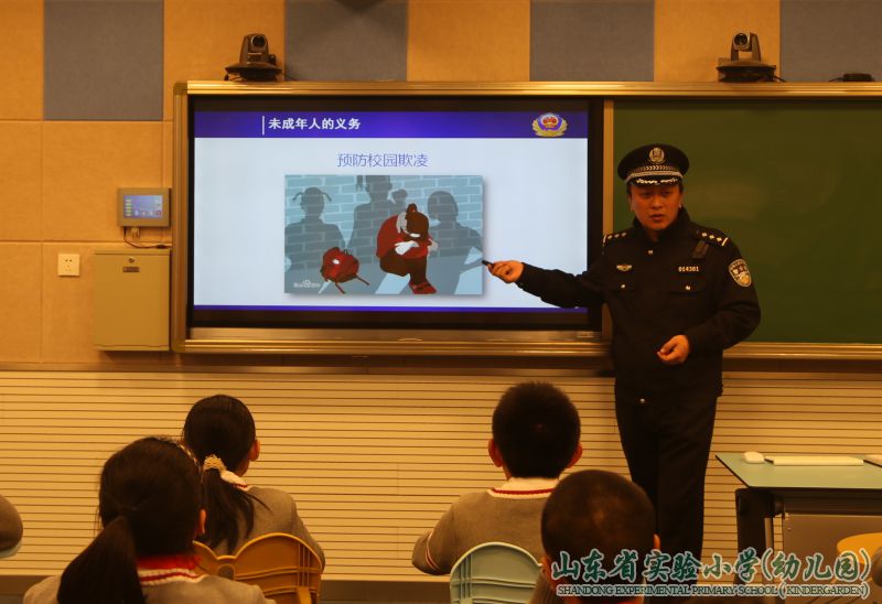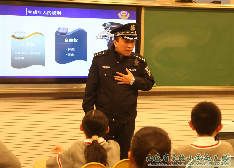 11月9日,学校课程“法治在线”专题讲座再度开讲,这也是山东省实验小学“学宪法 讲宪法”系列活动的第三站。本场专题讲座以“享有权利 履行义务”为主题,特邀曲京程警官为同学们主讲。
