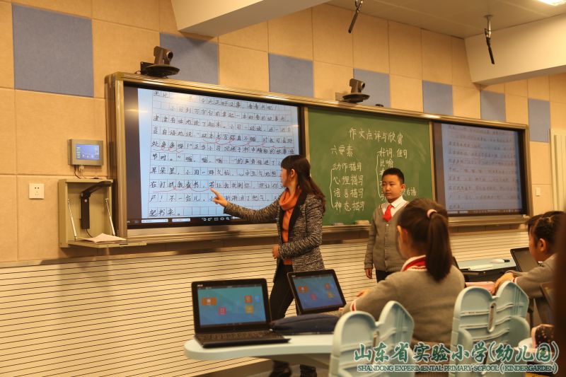 第一堂课的欢声笑语还在耳边,由周艳霞老师和四年级五班同学们带来的作文欣赏与讲评课让今天的习作“盛宴”更加滋味十足了。江老师推崇让学生有机会展示自己的习作,从而增强他们写作的信心,激发同伴之间的良性竞争。在今天的课堂上,周老师便给同学们创造了充分地展示空间:通过电子书包票选最佳作品新奇而有趣,不但展示习作的学生十分珍惜表达的机会,手握“投票权”的小评委们也都竖起了耳朵,认真参与进来。在欣赏与点评中,每一位孩子都获益匪浅。