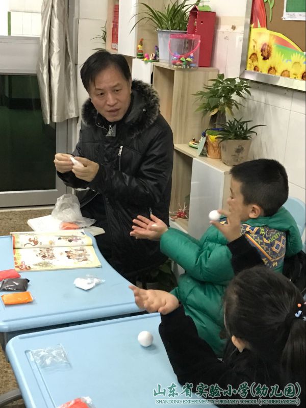 我负责了本次课程整合的美术工作,小雪人制作过程的步骤由我来给孩子们做了前期的教学。