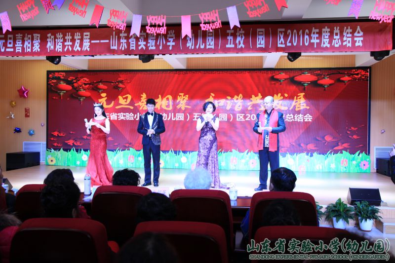 2016年12月30日,伴随冬日暖阳,满怀喜悦心情,以“元旦喜相聚,和谐共发展”为主题的山东省实验小学(幼儿园)五校(园)区2016年度总结会,在山东省实验小学合作学校济南高新区凤凰路小学隆重召开。“年度回顾、展示才艺、鼓舞士气、和谐共进”成为本次总结会的活动宗旨。