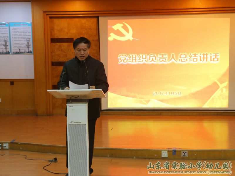 会议尾声,党总支书记苗建同志发表了热情洋溢的讲话。她首先对本次大会的胜利召开表示热烈的祝贺。要求广大党员教师要始终牢记自己的“党员”身份,牢记党员的义务和职责,发挥模范带头作用,始终保持党员的先进作风和优良品质。她同时强调,支部全体同志一定要认真学习并落实十八届六中全会精神,巩固“两学一做”学习教育成果,并紧密结合培育和弘扬社会主义核心价值观,以提高教育质量为目标,开拓创新,积极进取,为推进学校研究型一流团队建设和现代化精品教育的发展,为落实学校“润泽生命,教育无痕”的办学理念,全面提升办学品位,做出自己应有的贡献。