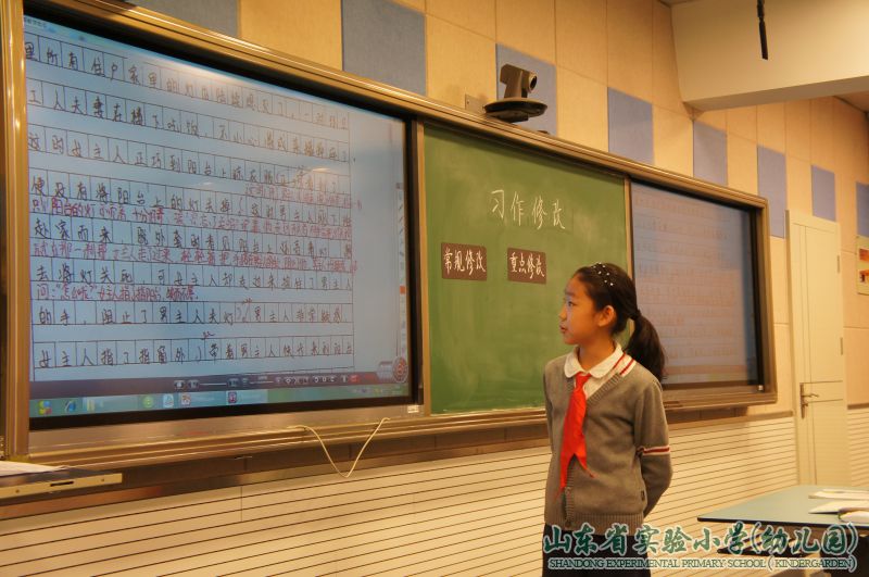 马晓健老师的习作修改课则从大处着眼、小处落笔,踏踏实实、有板有眼。马老师向同学们介绍了曹雪芹创作《红楼梦》,笔耕不辍、几易其稿最终写成“字字看来皆是血,十年辛苦不寻常”文学巨著的故事;然后又结合学生实际重温了叶圣陶爷爷为肖复兴修改作文的课文。这层层铺垫是在生动地告诉学生习作修改的重要性,让学生提高主动修改习作的意识。果不其然,学生们已经跃跃欲试,准备一试身手了。马老师顺势提出了修改习作的要求:围绕主题,运用多种细节描写,突出中心,有画面感。然后,小组分工合作,小组长执笔,小组成员共同讨论。马老师也加入到热烈的交流中,询问着修改情况并给出了自己的建议。在小组汇报环节,小组代表自信走上讲台将自己小组的修改意见呈现出来,有的从语句通顺方面,有的从语句的精炼方面、有的是从环境描写的生动具体方面进行修改,一处处精彩的改动得到了同学们的一致赞同。马老师鼓励同学们要反复修改,不嫌麻烦,每一次修改都能锦上添花,使你受益匪浅。这节课,学生们不仅明确了修改习作的重要性,而且学会了修改习作的种种方法,学生们收获颇丰。