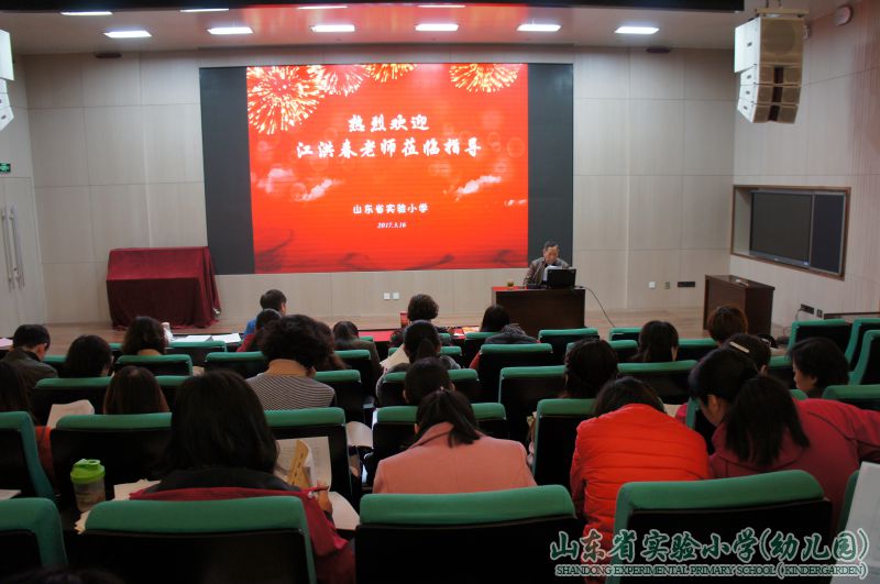 3月16日一大早,山东省实验小学三校区的老师们早已端坐在总校的多功能厅等候江洪春老师的到来。此次,江老师在前期教学实践的基础上,围绕“小学(4+4)体验式双课型”习作课程规划和“学导课堂”的设计与操作,进行了全面的指导和详细的阐述。