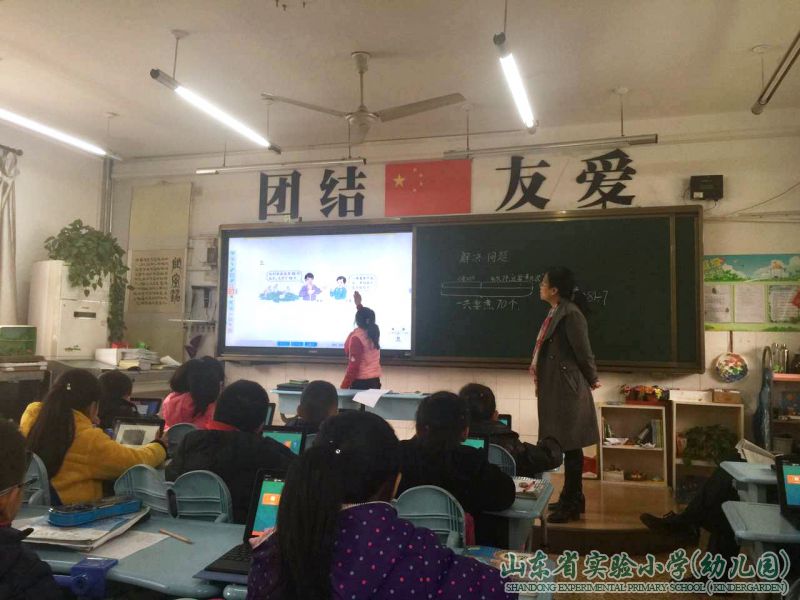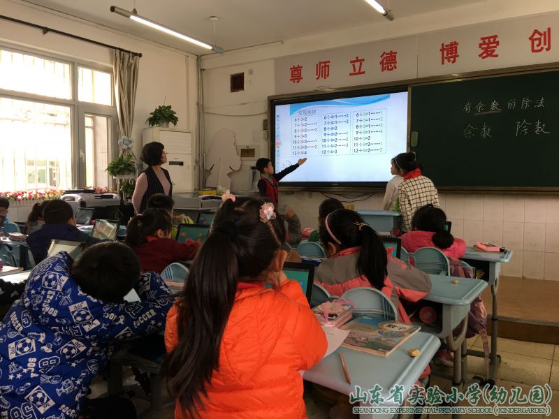 二年级的小朋友会熟练运用pad吗?使用pad的数学课堂是否高效?带着这些问题,我校二年级数学组在王欣老师的带领下顺利完成了新一轮的电子书包研讨课活动。王欣、李福娟、吕林杰三位老师分别尝试了《有余数的除法》、《解决问题》、《推理》三种课型的研究。王欣老师在课堂上主要尝试了拍照和及时反馈功能,学生在有效的活动中增强了兴趣、提升了能力,从反馈环节的效果来看,学生对余数和除数的关系掌握得很扎实。李福娟老师虽然是初次接触电子书包课堂,但她善于学习,勤于钻研,运用精心设计的课件充分展示出了pad课堂的优势;吕林杰老师的课堂上,学生分组合作,利用pad画一画、涂一涂、连一连,并把作品及时上传展示,寓教于乐,体现了“智慧课堂系统”高效的优势