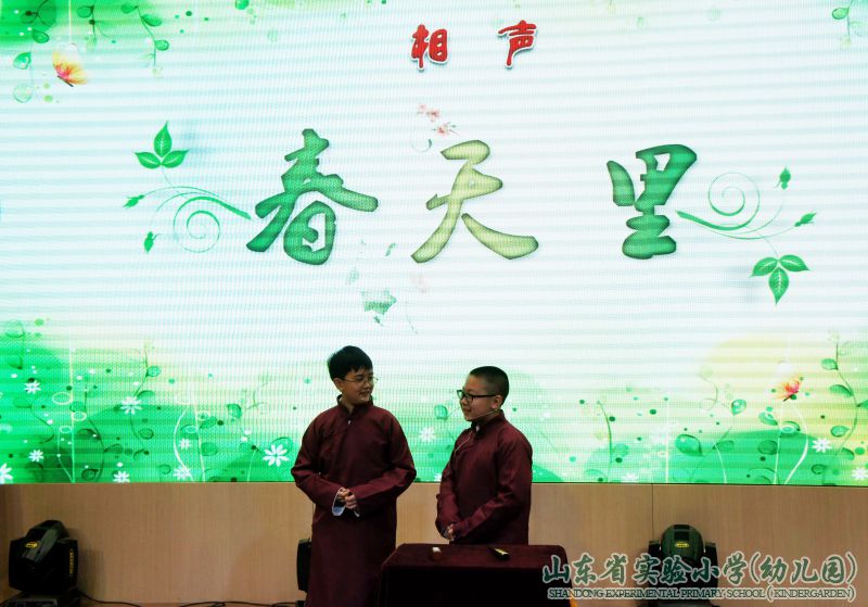 一段欢快的歌舞表演《春天和孩子》,拉开了本次展示活动的序幕。本学期的语文课上通过学习多种体裁的课文,同学们更深刻地体会到了语言表达的艺术和传统文化的博大精深,在开展综合性学习的过程中,他们也尝试用不同的语言表达形式表达自己的感悟与理解。在“第一幕 走进春天”,幽默的相声、优美的民乐、精彩的快板让在场师生感受到了传统曲艺的独特魅力和中国民乐的别有韵味,体会到美的多种表现形式。