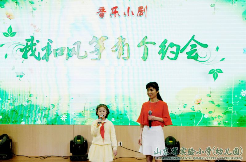 “第二幕 放飞春天”则以新颖别致的音乐短剧形式,展现了同学们在老师带领下扎风筝、放风筝的探究过程。风筝起源的自主探究,风筝绑线的数学知识,风筝放飞的科学原理,风筝制作的动手实践,风筝完成的快乐试飞……体现了学生们在课程整合过程中的快乐探究,自主学习。