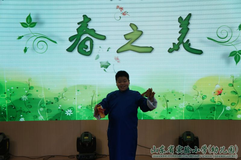 一段欢快的歌舞表演《春天和孩子》,拉开了本次展示活动的序幕。本学期的语文课上通过学习多种体裁的课文,同学们更深刻地体会到了语言表达的艺术和传统文化的博大精深,在开展综合性学习的过程中,他们也尝试用不同的语言表达形式表达自己的感悟与理解。在“第一幕 走进春天”,幽默的相声、优美的民乐、精彩的快板让在场师生感受到了传统曲艺的独特魅力和中国民乐的别有韵味,体会到美的多种表现形式。