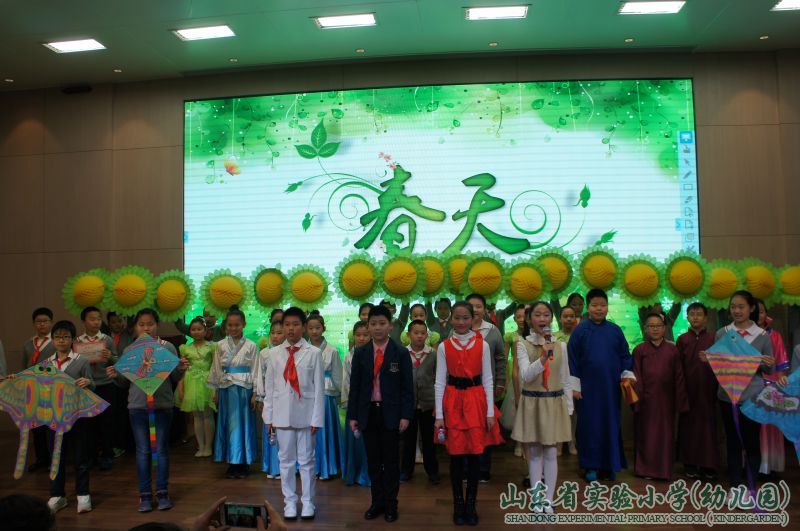 在学校课程整合背景下,以学校“润泽生命 教育无痕”核心理念为指引,五年级教研组的老师们,边学习边实践,尝试采用主题式的“以语文学科为基础、融合其他学科知识”的形式,初步进行了课程整合的探索。今天,这场以“畅享春之声 舞动春之韵”为主题的展示活动,就整合了语文、数学、科学、音乐、美术、综合实践、信息技术等多学科知识技能,是五年级组各学科老师的一次全新尝试。五年级同学在老师带领下,开展了一系列寻找春天、走进春天的综合性学习活动,用彩笔描绘春天,用镜头记录春天,用诗歌赞颂春天……