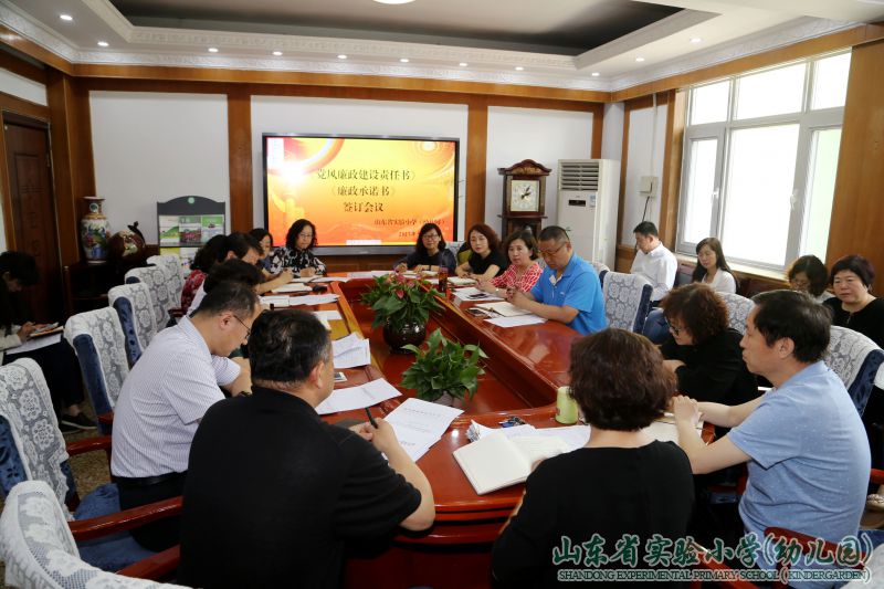 日前,山东省实验小学(幼儿园)在二楼会议室召开签订党风廉政建设责任书廉政承诺书暨“树师德、正师风”专项学习会议。会议由校长(园长)兼党总支书记苗建同志主持,全体中层干部及各党支部委员会委员参加。