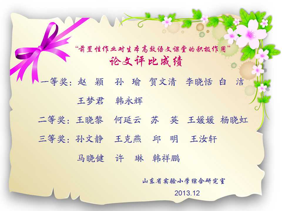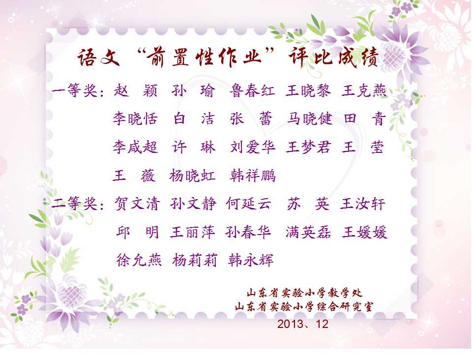 2013年12月,在学校领导带领下,在综合研究室和教学处联合组织下,开展了两项评比活动,现将评比结果公布如下,并对获奖老师表示祝贺!
