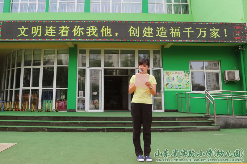 升旗仪式接近尾声,主持人陈老师借此契机向全园的小朋友发起“创建文明城市,争做文明小卫士”的倡议,并向全园师生提前送上国庆节和中秋节的节日祝福,在一片祝福声和欢声笑语中,升旗仪式圆满结束!