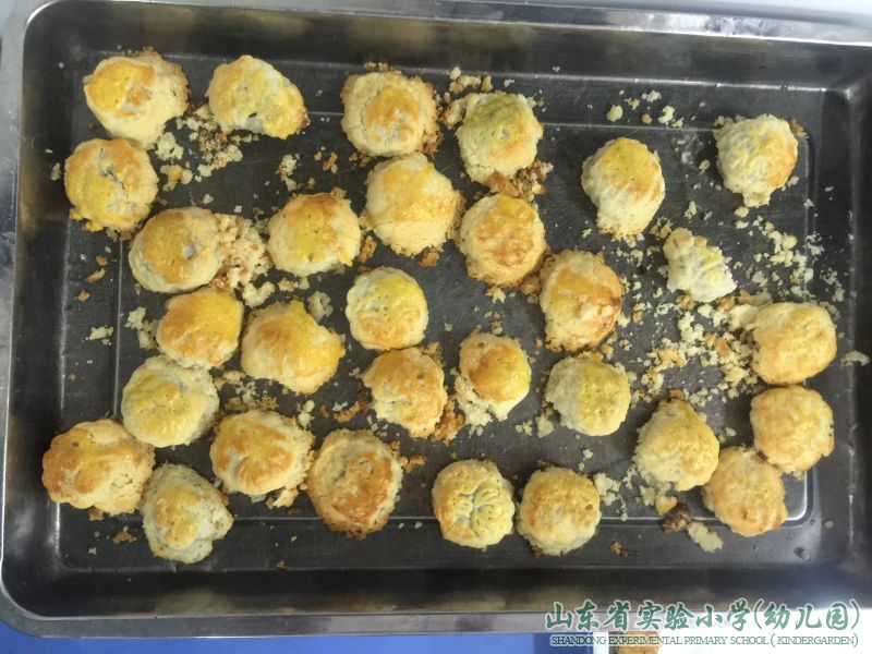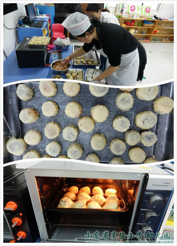 虽然打出来的样子没有像大人做的那么漂亮和规整,但都是孩子们亲手制作的,特别有成就感,孩子们望着自己打的月饼送到烤箱的那一刻,眼睛里满是期待……