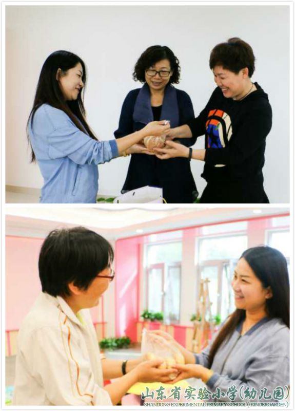 活动结束后,我们还进行了分享活动,将做好的月饼送给了一直在为新园装饰教室的老师们。