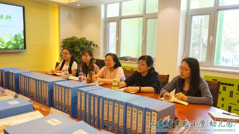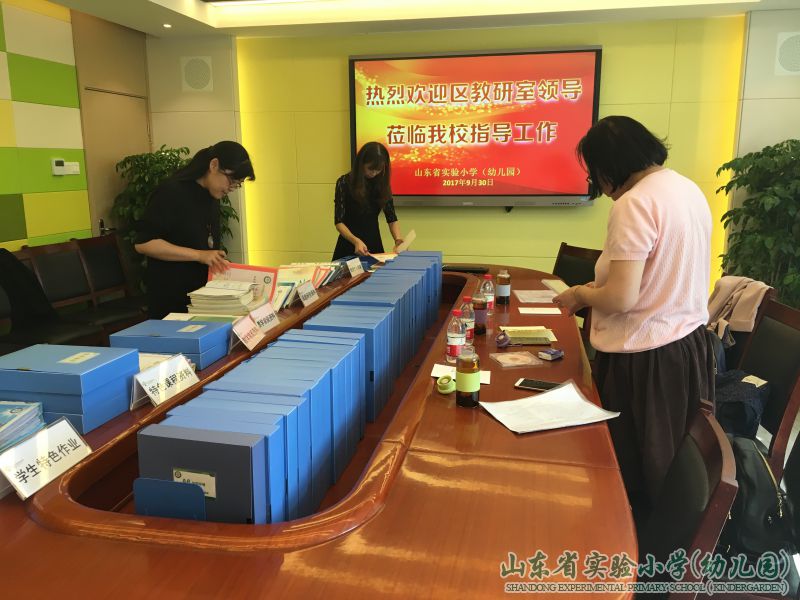 苗建校长对考察团领导莅临学校检查工作表示热烈欢迎,希望能够通过考察促进学校数学学科教研工作向纵深发展,历下区教研室教研员李秋焕老师介绍了此次学科教研示范学校创建的目的与意义。之后,进入考察环节。首先,张明刚副主任做了题为“有勤为径,以歌以行”的报告,向考察组领导汇报了我校数学组的建设及教研情况。他从教研组基本情况、教师发展、教研组工作亮点、数学学科活动、教科研开展情况等方面,认真细致地总结了数学学科教研组开展的一系列活动及取得的成绩,得到了考察团领导的肯定与赞扬。然后,考察团领导与我校数学教师代表进行交流座谈,通过交流,更加了解了我校数学教学的特色与亮点——“电子书包”课题、“五自”学习策略、学科整合、鲁一班、学科活动等。最后,考察团领导查阅了数学学科教研示范学校创建的相关资料。一盒盒档案材料,记录着数学教师扎实教研的足迹;一份份学生特色作业,呈现着我校学生良好的数学学习习惯与丰厚的数学学科素养的积淀。