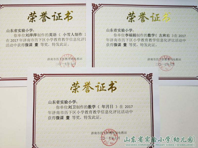 在济南市电化教育馆的各类评比中,孙文静的课例荣获一等奖,徐萌老师的课例荣获了二等奖,李福娟老师的微课荣获了三等奖。