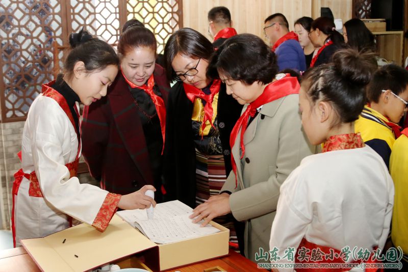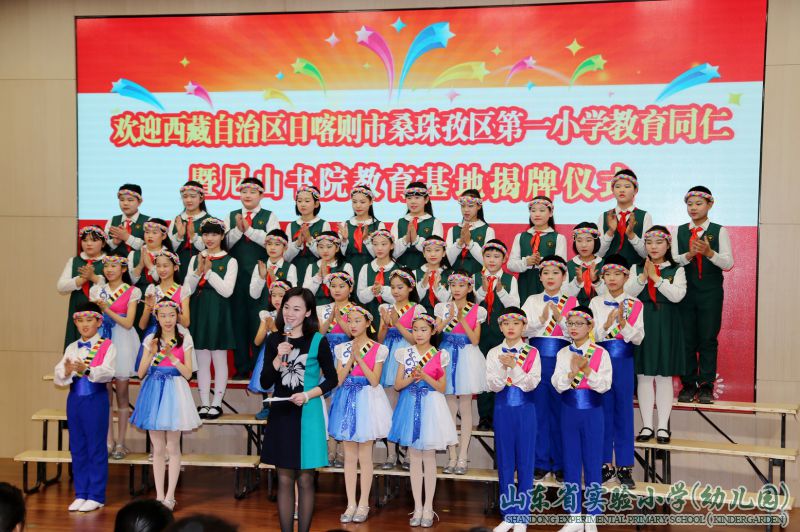 12月27日下午,山东省实验小学在学校多功能厅及新建成的学校数字国学馆举行了欢迎西藏友好学校日喀则市桑珠孜区第一小学教育同仁暨尼山书院国学体验教育基地揭牌仪式。山东大学艺术学院张彤教授、山东省图书馆尼山书院任蒙主任、山东教育印务中心仪器用品部潘猛部长、山东大学新六艺学堂王忠青主任莅临活动现场,苗建校长、李笃强副校长和我校部分师生参加活动。