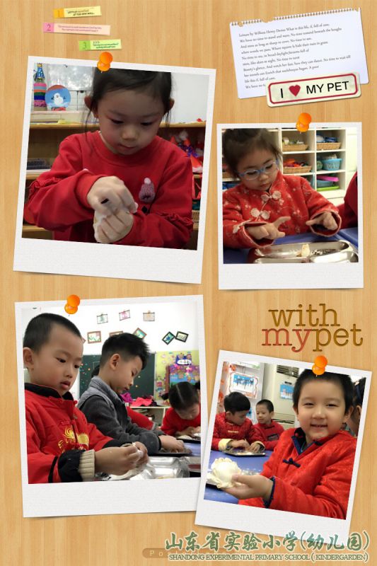 活动的最后一个环节是共享团圆。首先,大家围坐在一起,师幼一同包饺子。“瞧,我包哒!”“哈,我包了个花饺子!”孩子们仔细的包着饺子,感受着饺子成型后的满足与喜悦。