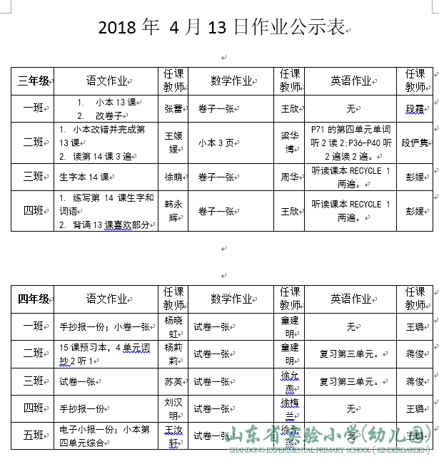 2018年4月13日作业公示