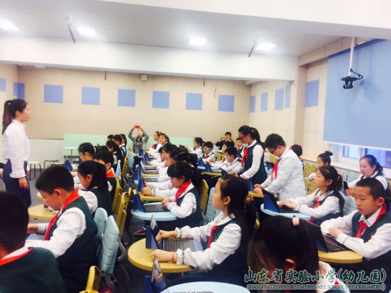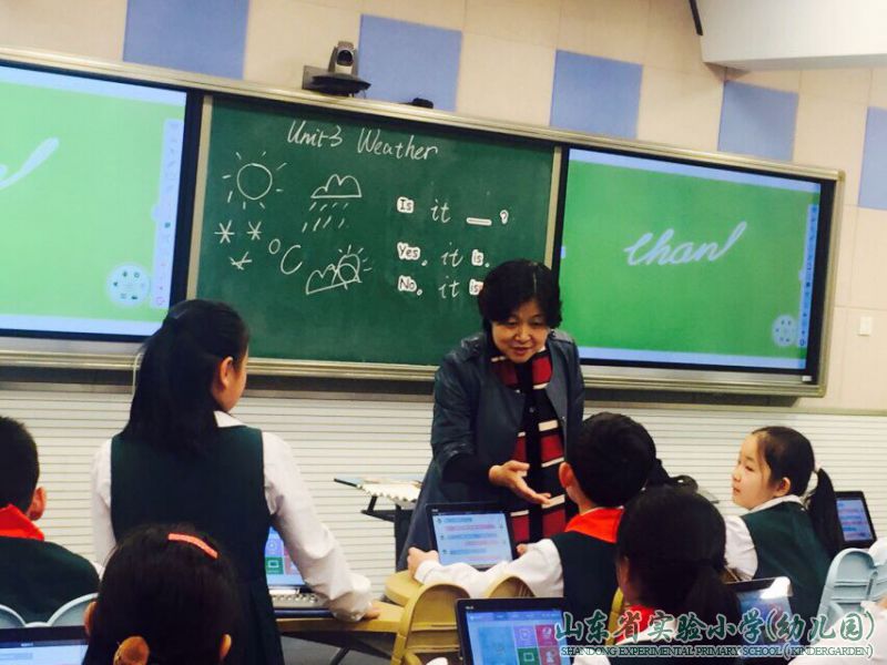 在教学处黄红艳主任的精心组织下,山东省实验小学英语教研组老师于2018年4月11日开展了省实验小学英语“电子书包课”的集体教研活动。苗建校长也非常重视和关心我校英语教学中电子书包的运用情况,所以在百忙之中也亲自参加了本次英语“电子书包课”的教研活动,并作出了指导和评价。这次集体教研活动主要由两部分组成,观摩“电子书包”公开课和公开课的评价指导。