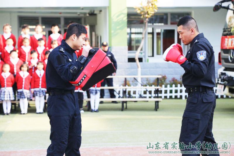 今天的升旗仪式邀请到了济南市公安消防支队历下大队的消防员叔叔现场讲解消防安全知识,济南市公安局特警支队一大队一中队教导员邱鹏叔叔及战友们带来安全演讲和特警军体拳展示……队员们在互动、交流、体验中对安全知识有了更为深刻的理解。