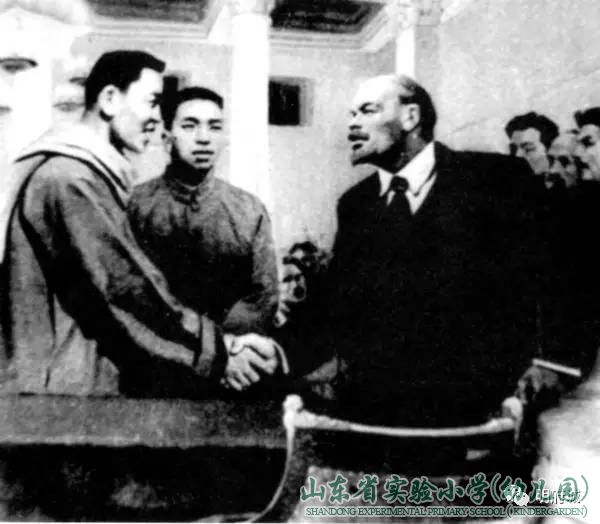 1922年1月,王尽美出席在莫斯科召开的远东各国共产党及民族革命团体第一次代表大会,见到列宁同志(油画)