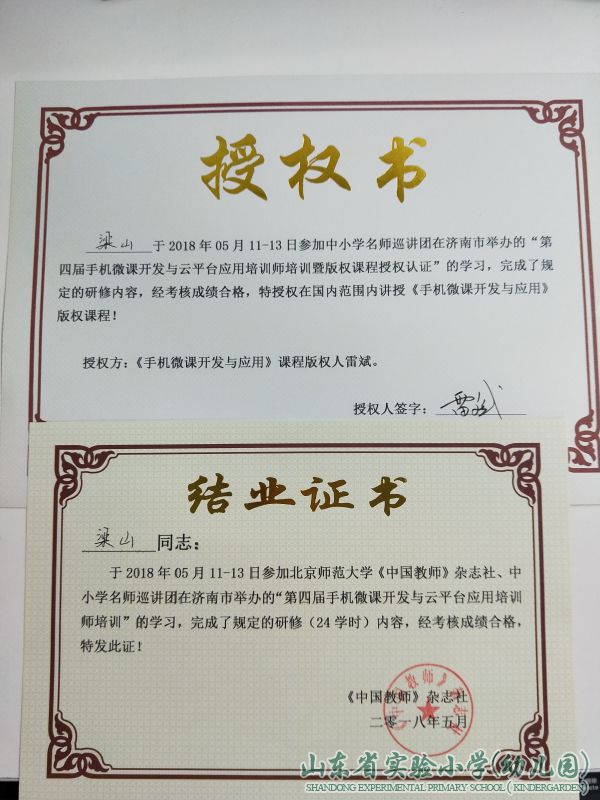 通过学习,梁山等5位老师以优异的成绩结业,获得“第四届手机微课开发与云平台应用培训师培训”结业证书和《手机微课开发与应用》版权课程培训师授权书。