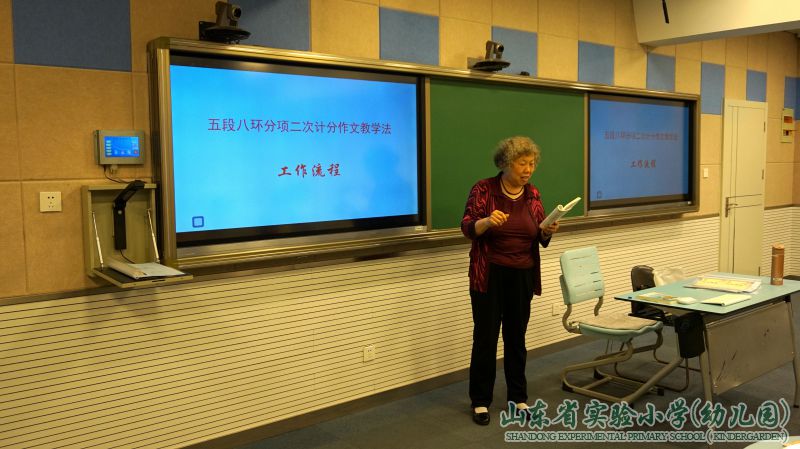 习作教学素有“半壁江山”之称,一直是语文教学中的重要部分,也是语文教学的难点所在。上次孟老师的讲座从高屋建瓴的理论角度对我们做了简明扼要的介绍,老师们纷纷表示对孟老师的作文教法产生了浓厚兴趣,于是山东省实验小学于2018年5月17日上午再次邀请有着资深教学经验,且一直致力于小学习作教学研究工作的优秀教师孟繁英老师莅临我校,对“五段八环——分项二次计分”习作教学法进一步做出具体指导。
