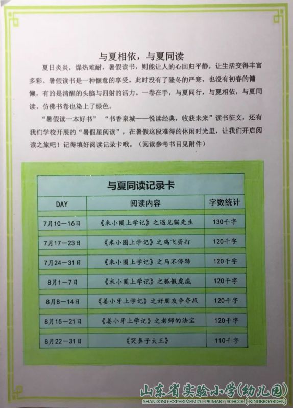 --山东省实验小学2018暑假课程手册