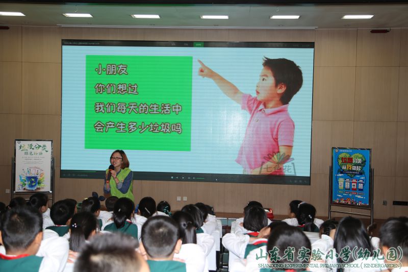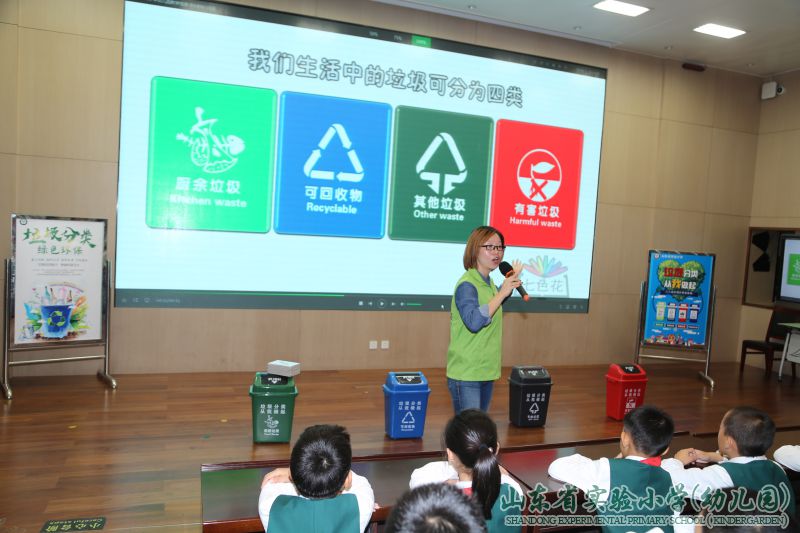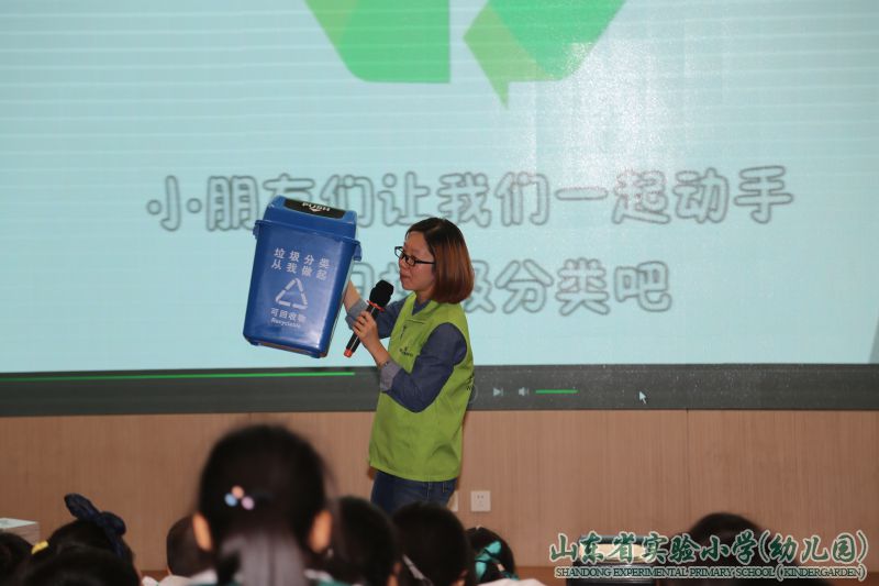 我校邀请环保志愿者陈阿姨,在多功能厅开展了“小手拉大手之垃圾分类”环保讲座,陈阿姨通过视频展示,向大家介绍我们身边的环境现状,阐明垃圾分类的重要意义,讲解垃圾的种类,及分类的垃圾回收后如何被再利用。讲座现场气氛活跃,陈阿姨时不时与同学们互动交流,同学们积极踊跃回答陈阿姨提出的问题,在交流互动的过程中,不断深入了解垃圾分类知识。
