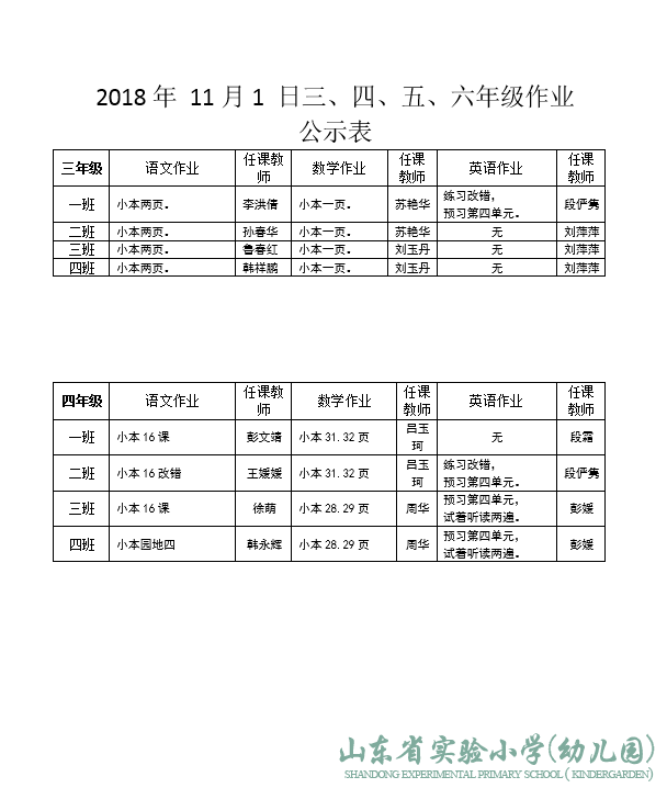 2018年11月1日作业公示
