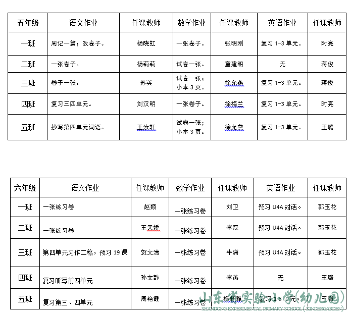 山东省实验小学领导班子成员分工