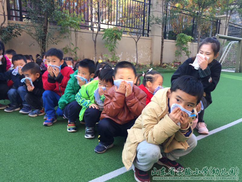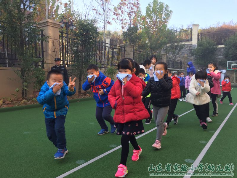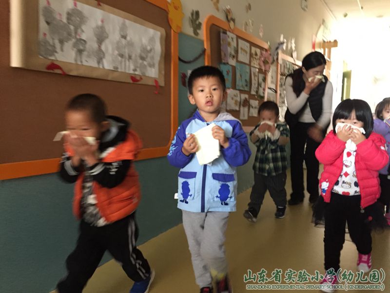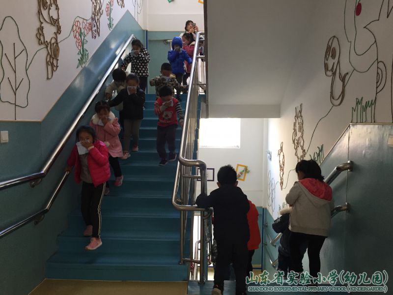 上午9时左右,听到消防安全疏散广播后,全园进入警报状态,防火疏散演练拉开了序幕,各班级教师再一次向幼儿说明演练程序和演练要求,指导幼儿手拿毛巾捂住嘴巴和鼻子。紧急的警报声响起,各班教师迅速按紧急预案的疏散线路带领幼儿拿起湿毛巾,捂住口鼻,弯腰小步快走,分两道楼梯迅速且有序下楼。途中,孩子们安静且井然有序。很快孩子们集中到操场安全地带,教师迅速地清点人数,并向总指挥报告。整个疏散活动只用了2分多钟。