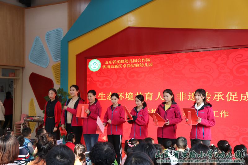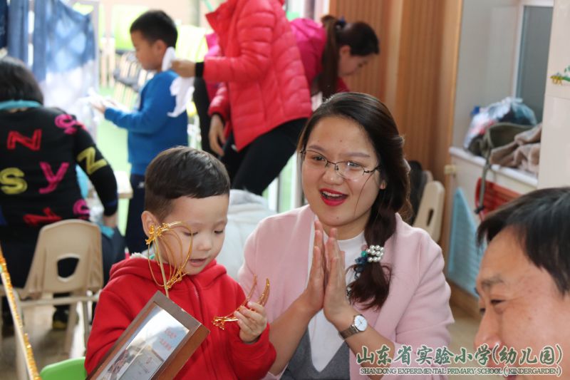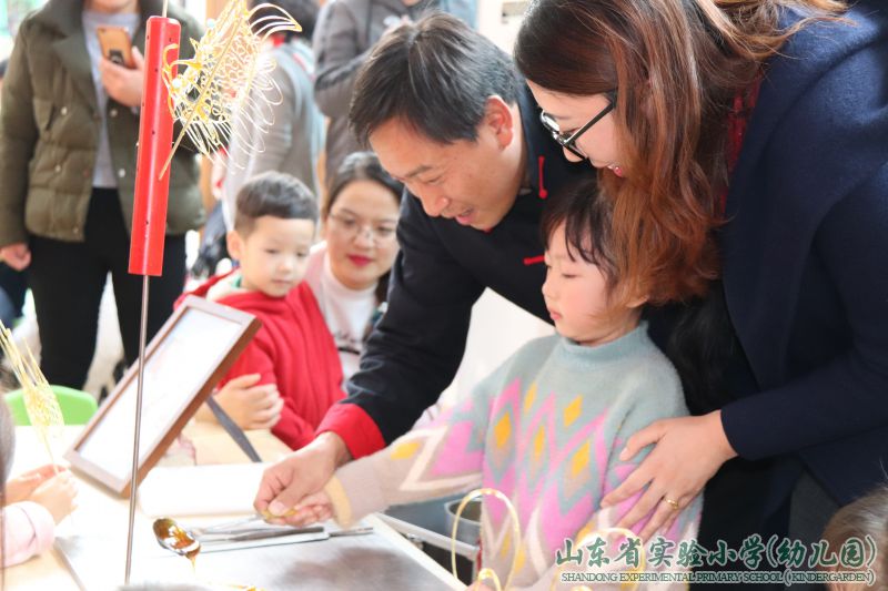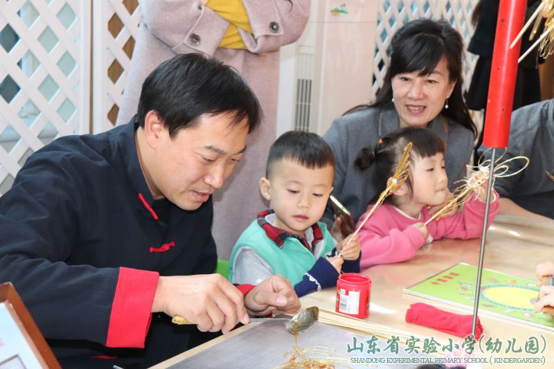 我园在“润泽生命教育无痕”办园理念引领下,构建生态的教育环境,形成了“尊重生命,归于自然,回归生态,艺术生活”的办园风格。幼儿的成长,不仅仅是家庭单方面的教育,更不是幼儿园单方面的工作,随着国家对幼儿教育的重视,人们渐渐意识到家庭、幼儿园、社区共同教育的重要性。为共同创设幼儿园、家庭、社区三位一体的生态教育环境,形成教育合力,传播最美最适宜的非遗传统文化,为幼儿成长、发展奠基;幼儿园与家委会成员、家长代表、齐鲁软件园社区居委会代表和孩子们进行了一场别开生面的非物质文化遗产亲子体验活动。