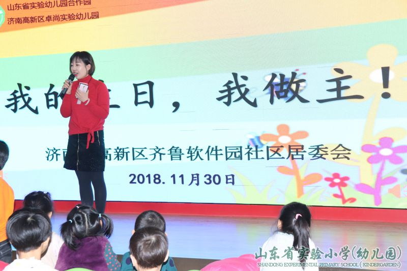 随着主持人董文欣老师与孩子们的现场交流互动:“我想先来问一下我的孩子们,宝贝们你们知道你们今天来这里是要干什么的吗?”“聪明的你们有没有发现,不管是我们的大朋友还是小朋友,今天到场参加活动呀都是十二月份出生的宝贝!”原来,今天是齐鲁软件园社区居委会的叔叔、阿姨把我们幼儿园所有十二月份出生的小朋友和他们的爸爸妈妈们,还有与我们幼儿园隔壁的凤凰路小学的小学生代表和他们的爸爸妈妈都邀请来,我们一起过生日!紧接着,齐鲁软件园社区居委会主任张明轩阿姨为小朋友们送上生日的祝福!园长妈妈也祝我们生日快乐,并宣布活动开始。