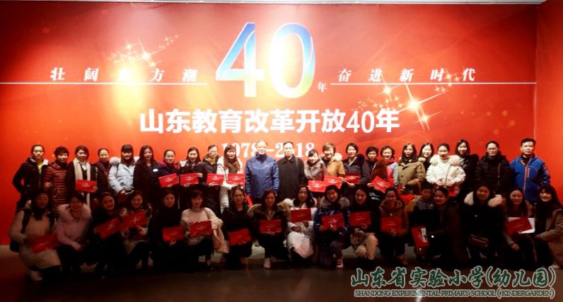 1215日、16日,由中共山东省委教育工委、省教育厅主办的“壮阔东方潮,奋进新时代—山东教育改革开放40年图片展”在山东博物馆举行。15日上午,校(园)党总支书记、校长(园长)苗建同志参加了展览开幕式。16日下午,学校(幼儿园)领导班子同志与六校(园)区教职工一起参观了此次展览。