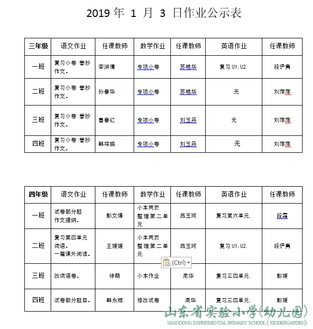 2019年1月3日作业公示