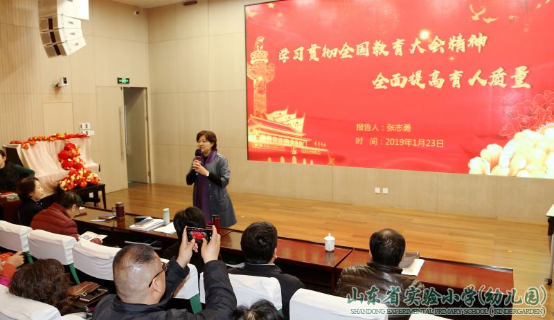 1月23日下午,山东省教育厅一级巡视员张志勇来到山东省实验小学(幼儿园),为学校六校(园)区的老师们带来了题为《学习贯彻全国教育大会精神 全面提高育人质量》的报告。
