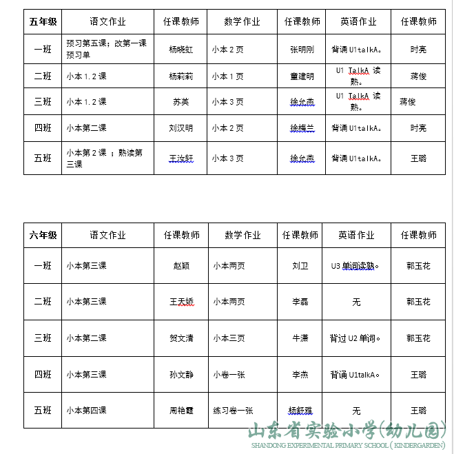山东省实验小学领导班子成员分工