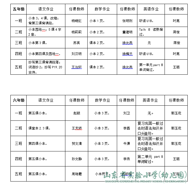 山东省实验小学领导班子成员分工