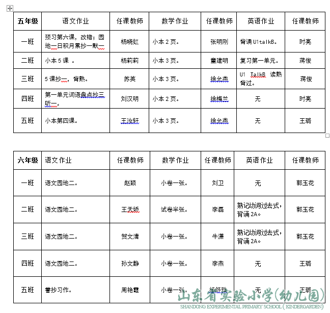 山东省实验小学领导班子成员分工