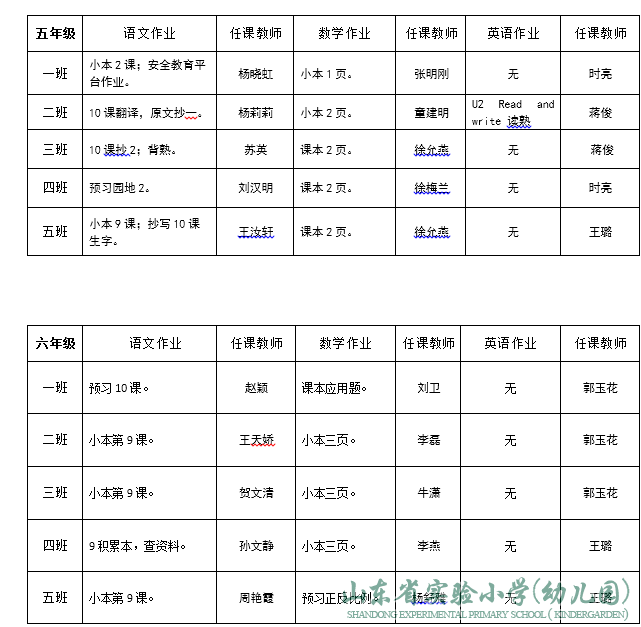 山东省实验小学领导班子成员分工