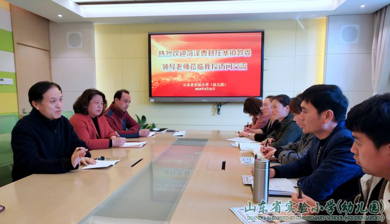 在省派曹县乡村振兴服务队积极协调和山东省教育厅、山东教育电视台大力支持下,省实验小学(幼儿园)与庄寨镇人民政府达成教育帮扶计划。3月18日至22日,“乡村振兴•教育帮扶 4+1 行动”(即开展四次交流学习,打造一个互动直播课堂平台)之首期教育管理培训班在省实验小学(幼儿园)开班,来自曹县庄寨镇教委及相关小学的干部、教师十余人通过跟岗学习、参观听课、座谈交流等完成了富有体验性、实践性的系列培训,这是双方继去年12月省实验小学(幼儿园)赴曹县送教后又一次深度交流,也拉开了2019“乡村振兴•教育帮扶 4+1 行动”的序幕。这同时是校(园)党员志愿服务月活动的一项重要内容,党员干部教师以“做志愿表率 为党旗增辉”为目标积极参与到活动中去,提供观摩课例,参加交流研讨,发挥了党员的先锋模范作用。