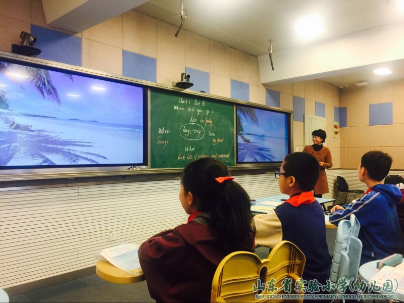 为更好的践行“减负提质”指导思想,构建高效英语课堂,山东省实验小学在3月18日至19日进行了“减负提质”英语组公开课的展评教研活动。在教学处黄红艳主任、张明刚主任的指导下,班主任孙文静老师、孙春华老师的极力配合下,以及“电子书包”技术负责人胡艳老师的支持下,英语组的刘萍萍老师和夏颖老师各自呈现了一堂精彩高效的英语课,之后领导和老师们也都进行了细致、有针对性的评课,让老师们收获颇多。