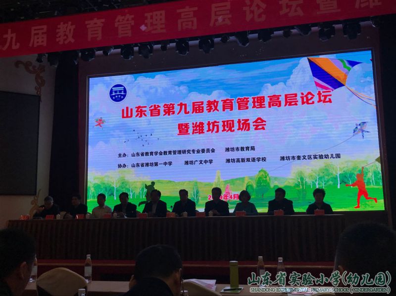 4月25日至27日,山东省第九届教育管理高层论坛暨潍坊现场会在潍坊举行。本次会议的主题为“实践中的教育现代化”,分别从办学条件现代化、制度体系现代化、素质教育现代化、育人能力现代化等方面展开了研讨。论坛邀请了国内知名专家田征、李振村等做主题报告,并参观学习了潍坊一中、广文中学、外国语学校、奎文实验幼儿园等知名学校(幼儿园)。