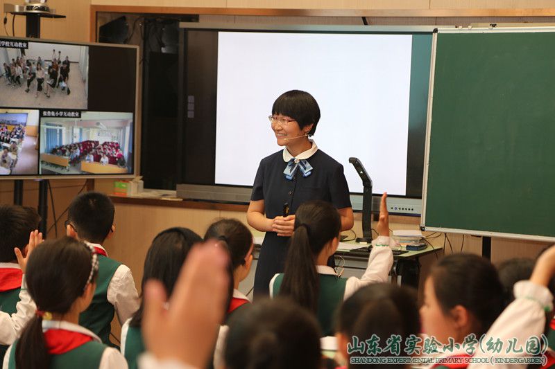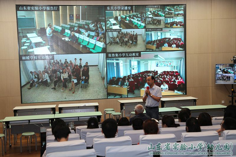2019年5月15日上午,山东省实验小学在一楼多功能厅举行了两地五校教研共同体的异地教研研讨活动。参加本次教研活动的有历下区资深教研员崔毅峰老师、山东省实验小学的苗建校长、李笃强副校长,我校和合作学校凤凰路小学的老师们,还有通过直播课堂平台观摩交流的郓城县张营镇丽媛小学、东关小学、张鲁集小学等三所友好学校的领导老师们。