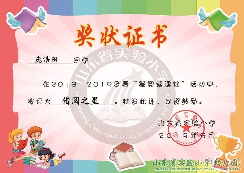 2019年寒假,在以“星阅心愿”为主题的“星阅读”活动中,我校有田雨禾、陈其扬、曹瀚赜、范嘉庆、马腾、张瑞琳等378名同学积极参加阅读活动,被评为了“阅读之星”。他们不仅认真完成了3本阅读书目的全国测评,而且成功放飞“孔明灯”,实现美好的“星阅心愿”。