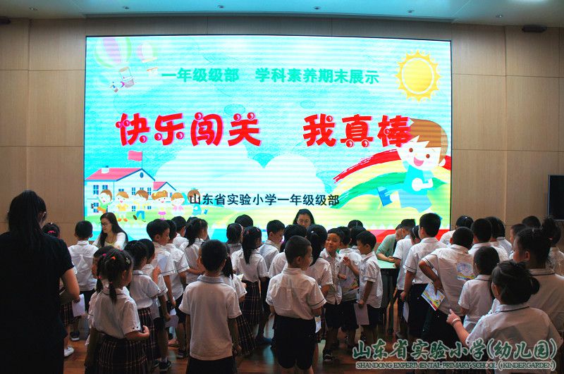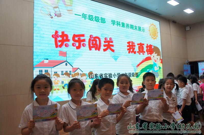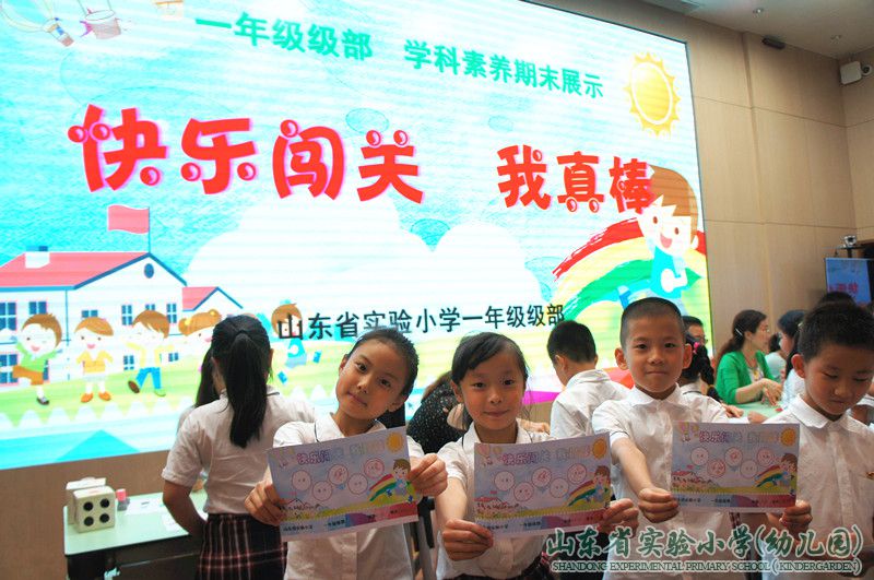 山东省实验小学一年级教研团队,为了深入落实义务教育阶段的培养目标,面向全体,适应学生个性发展的需要,使得人人在学习中都能得到不同的发展,获得进一步发展所必需的学科素养;也为了让期末学科素养展示更符合孩子的年龄特点和心理需要,保护孩子的学习积极性,结合一年级学科特点,在充分关注孩子掌握知识和形成技能的基础上,精心设计开展了这次“快乐闯关,我最棒”的素养展示活动。孩子们在闯关活动中,成功的展示了自我,并体验到了学习的愉悦。