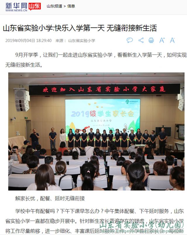 新华网:山东省实验小学:快乐入学第一天 无缝衔接新生活