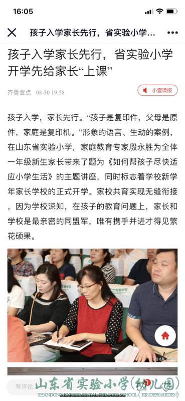 齐鲁壹点:孩子入学家长先行,省实验小学开学先给家长“上课”